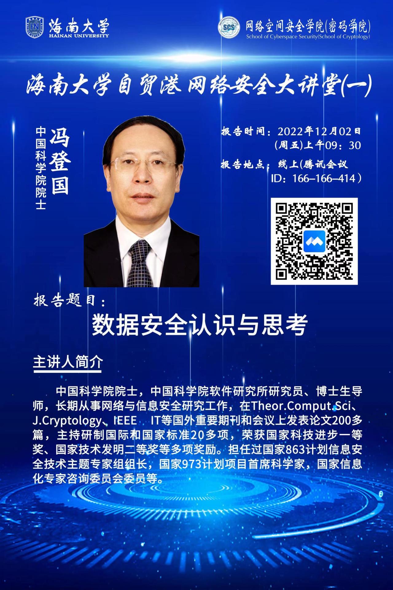 【Beat365中国唯一官方网站自贸港网络安全大讲堂(一)】数据安全认识与思考--冯登国