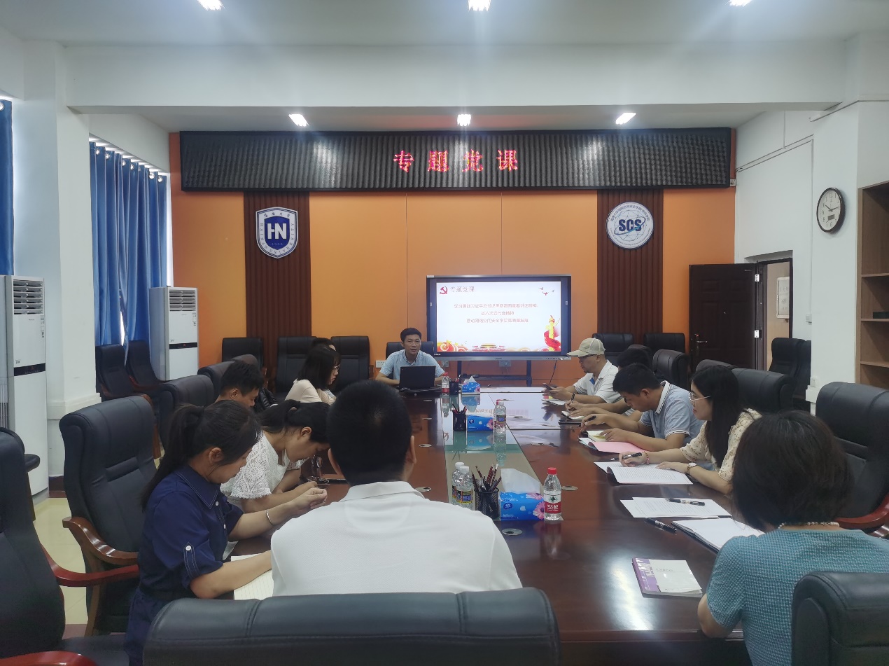 7月1日,围绕学习贯彻习近平总书记考察海南重要讲话精神、省第八次党代会精神等内容,学院党总支书记陈广锐为全体教工党员讲授了一堂专题党课。学院全体教工党员参加了党课学习。
