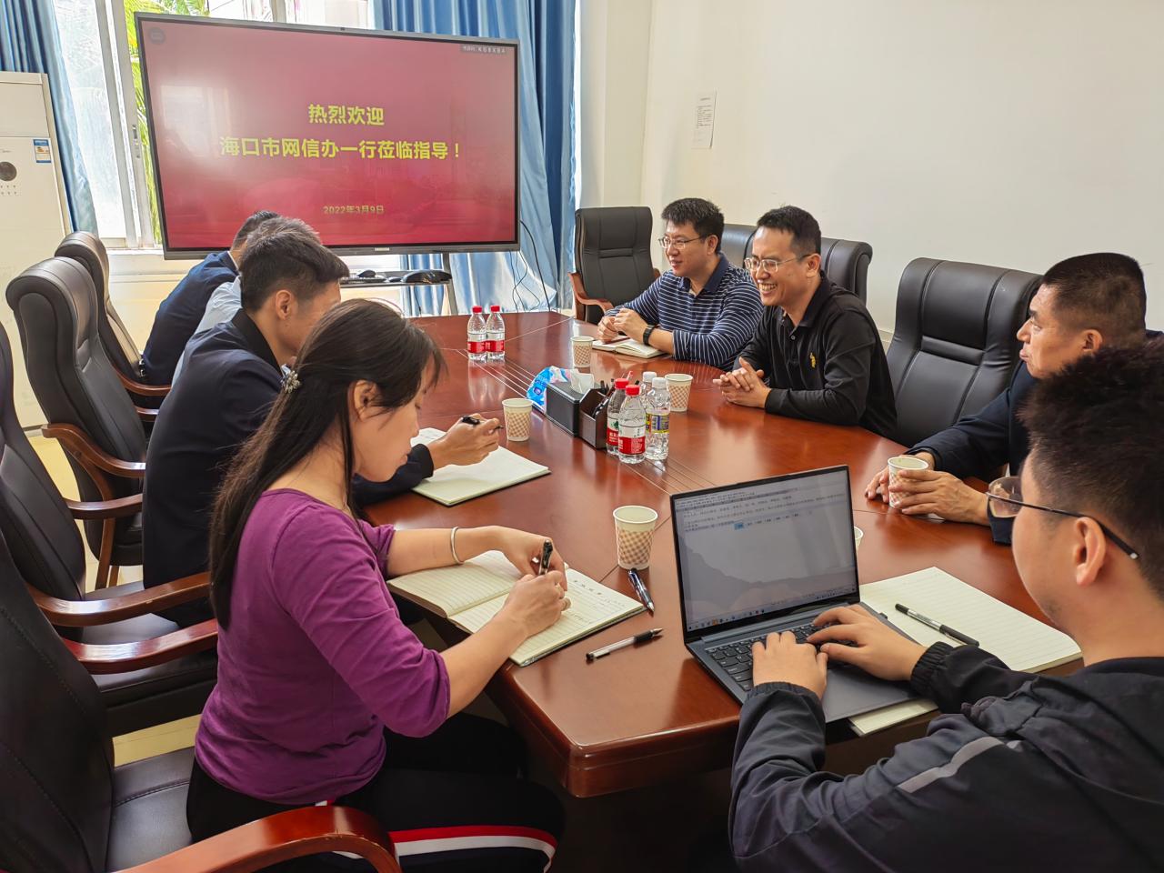 2022年3月9日,海口市委网信办副主任邢为坚等人一行莅临Beat365中国唯一官方网站考察交流网信工作,执行院长曹春杰、学院党总支书记陈广锐、副院长周晓谊及教师代表出席交流会。