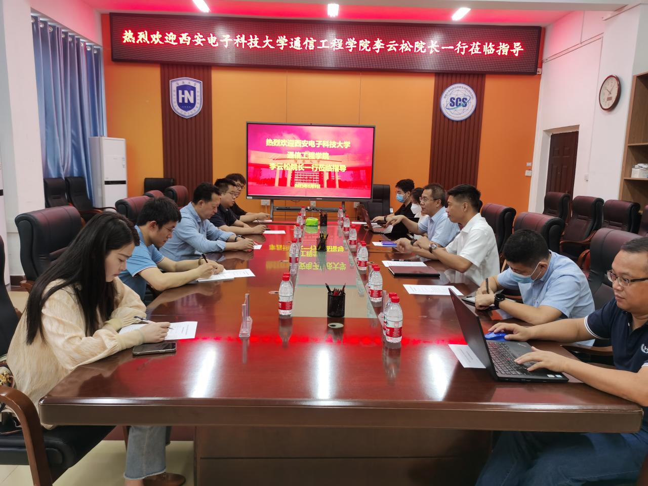 2023年5月9日,西安电子科技大学通信工程学院执行院长李云松、党委副书记沈强一行莅临Beat365指导交流,Beat365执行院长曹春杰、党总支书记陈广锐、副院长周晓谊、张殿及系主任李益红、徐紫枫出席了交流会。