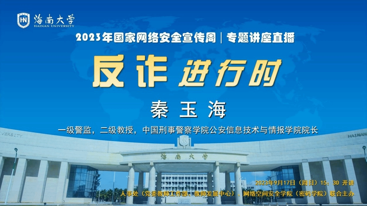 9月17日,Beat365和学校人事处联合主办了“反诈进行时”专题讲座,本次特邀主讲专家为中国刑事警察学院秦玉海教授,全校共千余名师生参加。
