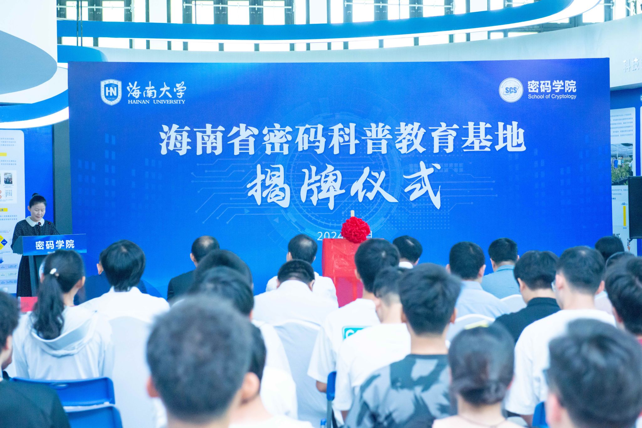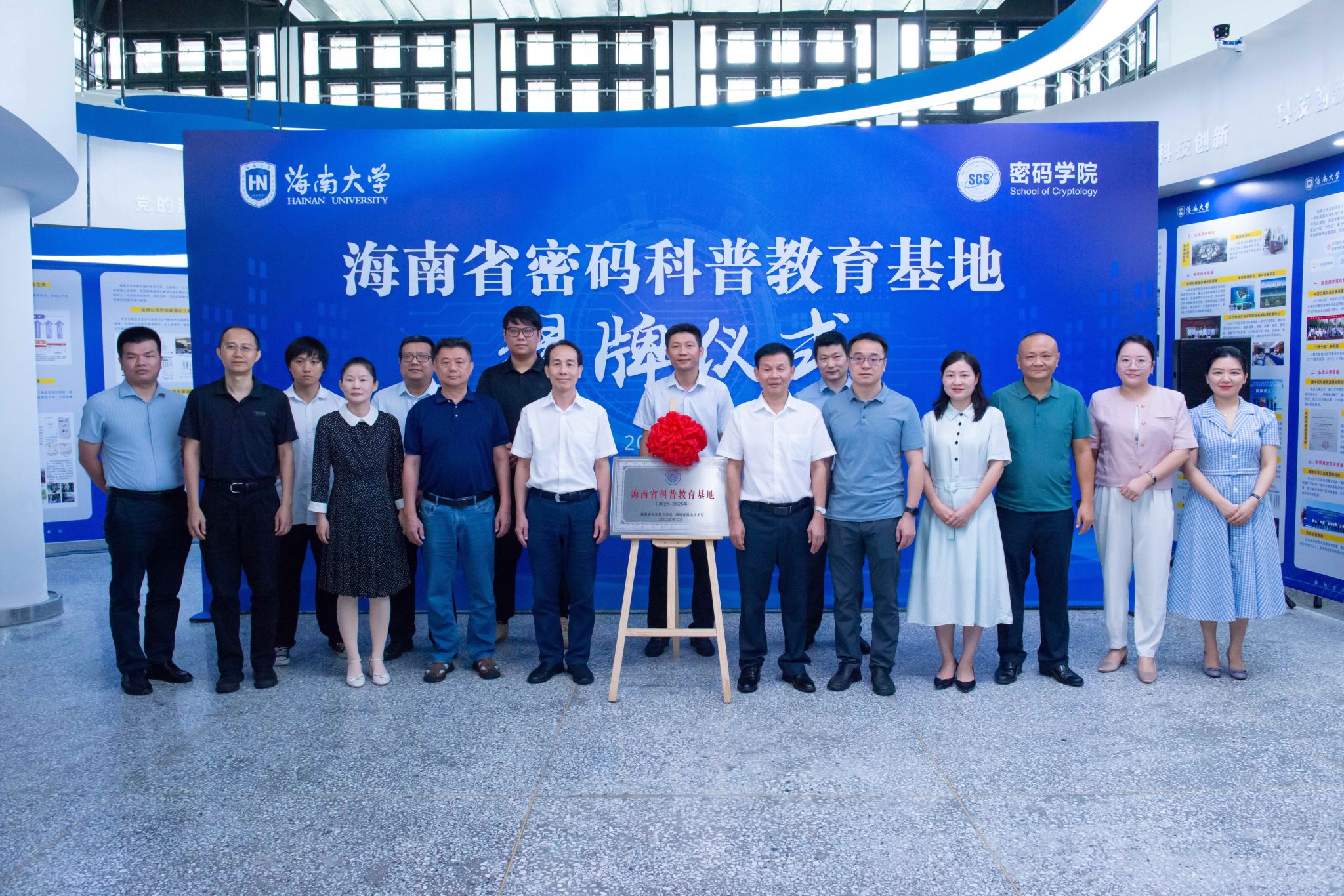 2024年6月6日,Beat365中国唯一官方网站举行海南省密码科普教育基地揭牌仪式,海南省国家密码管理局局长蔡国杰、商用密码管理处处长陈川,海南省科学技术协会二级巡视员吴钟海、科普部副部长梁婧俏,海南省科学技术厅政策法规规划处副处长覃业敏,Beat365中国唯一官方网站党委常委、副校长刘谦、科学技术发展院副院长陈伟、Beat365中国唯一官方网站党总支书记陈广锐等出席活动。