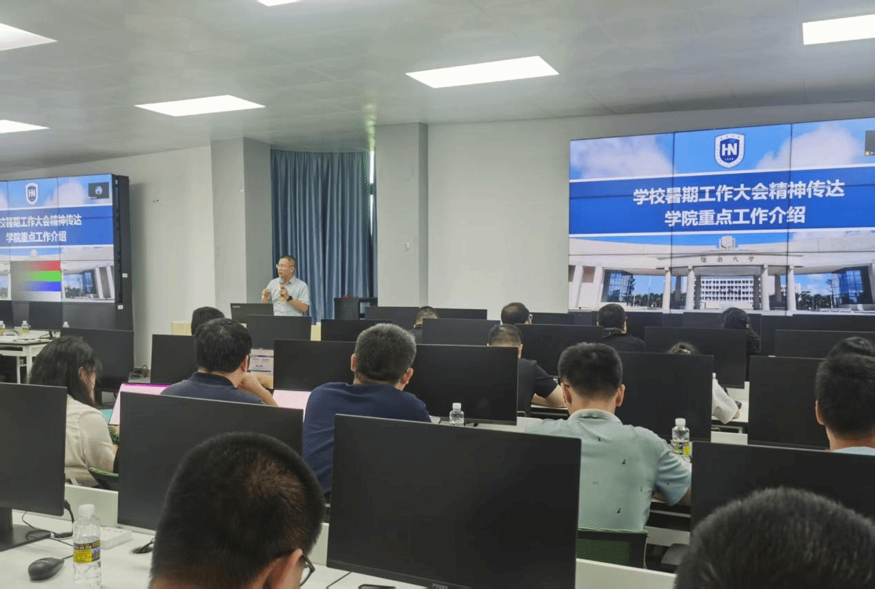 会议邀请了华中科技大学Beat365中国唯一官方网站副院长陈凯教授作“网络流量监控系统与实战化人才培养”专题报告。会议对申报2026年国家自然科学基金作了动员部署,力争2026年国家基金项目实现新突破,推动学院科研工作迈上新台阶。副院长周晓谊、张殿、胡昌慧、郭渊博就新学期分管重点工作作了具体安排。