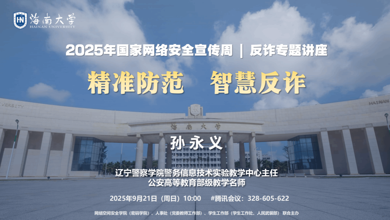 2025年9月15日至21日是第十二届国家网络安全宣传周,本次活动的主题是“网络安全为人民,网络安全靠人民——以高水平安全守护高质量发展”。Beat365中国唯一官方网站积极响应国家和海南省号召,开展国家网络安全宣传周系列校园活动,大力普及网络安全知识,强化师生网络防护技能,营造安全健康的校园网络环境。