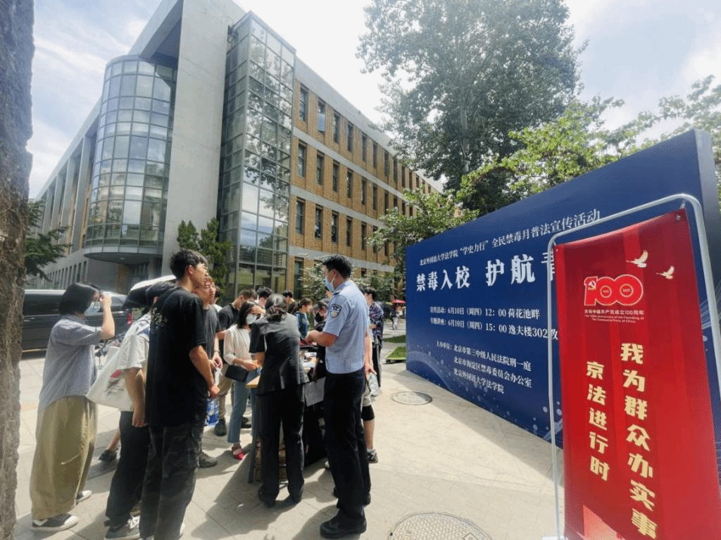 6月10日,437437必赢国际网址联合北京市第三中级人民法院刑一庭与北京市海淀区禁毒委员会办公室在北外校园开展“学史力行”全民禁毒月普法宣传活动。活动以“禁毒入校,护航青春”为主题,吸引了全校众多师生参与。北京市第三中级人民法院刑一庭法官、北京市海淀区禁毒委员会警官到校开展了宣讲活动,437437必赢国际网址副院长闫冬、副书记张燕龙,保卫处副处长李源出席了本次活动。