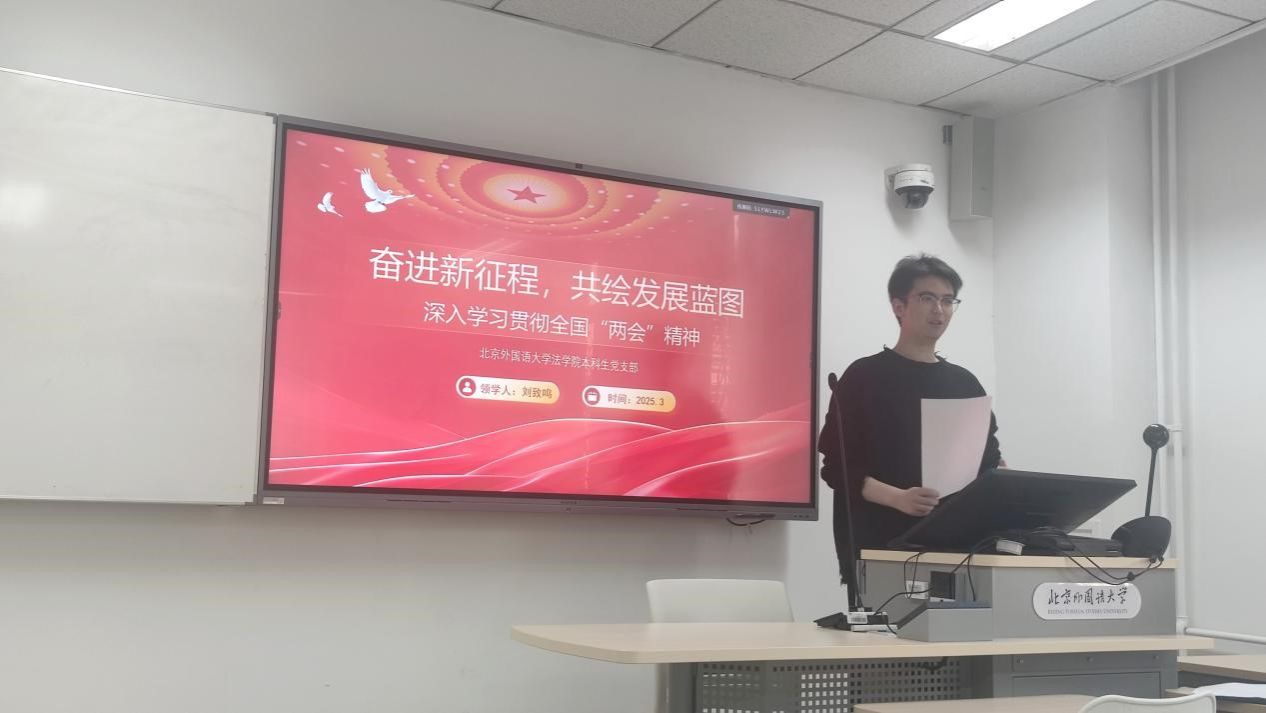 为深入学习贯彻2025年全国“两会”精神,明确发展方向,凝聚奋进力量,2025年3月22日上午,437437必赢国际网址本科生党支部于中文楼104教室召开支部会议,集体学习“两会”精神。本次活动由本科生党支部副书记刘致鸣领学,全体支部党员参与。