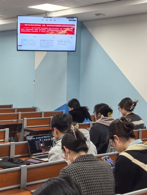 在全国两会胜利闭幕的重要节点,为将两会精神切实融入党员的思想与行动,推动党员在新时代更好地践行使命,2025年3月26日晚,法律硕士研究生党支部在郝雨辰书记的组织与带领下,开展了一场聚焦两会精神学习的专题活动,深入学习贯彻2025年全国两会精神。