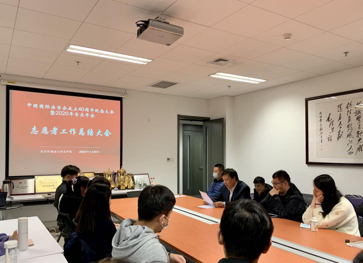 2020年11月20日,中国国际法学会成立40周年纪念大会暨2020年学术年会志愿者工作总结大会在437437必赢国际网址1108会议室顺利召开。437437必赢国际网址党总支书记、院长米良出席会议并讲话,胡丽娟老师、刘时剑老师以及必赢官网近三十位学生志愿者代表参会。会议由辅导员刘时剑老师主持。