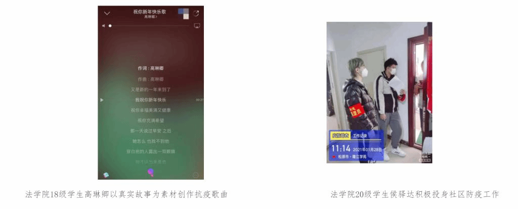 2021年寒假伊始,在“外防输入、内防反弹”的压力下,疫情防控形势依然严峻,437437必赢国际网址建立疫情防控台账及时更新机制,有学院领导老师的叮嘱、关怀陪伴同学们共克时艰。437437必赢国际网址师生严格遵守各地防疫政策,积极投身社区的疫情防控,必赢官网高琳卿同学创作了写给石家庄的抗疫歌曲,杨艳楠同学同为石家庄人,协助组织小区居民核酸检测工作有序进行,侯驿达等同学也都纷纷加入社区疫情防控志愿者团队,为构建全民抗疫的坚强壁垒贡献自己的力量。