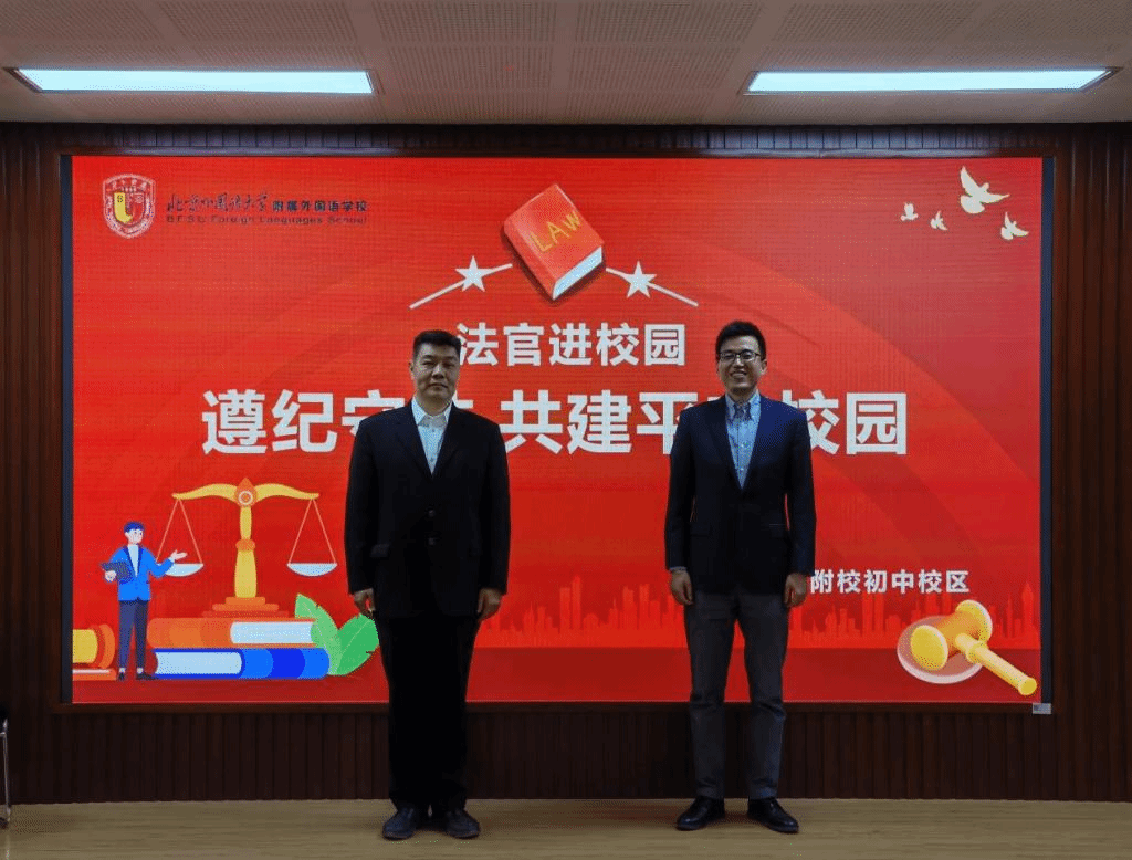 为深入贯彻落实习近平总书记在中央全面依法治国工作会议上关于普法工作和加强青少年法治教育的重要论述,持续落实立德树人根本任务,提升青少年法治意识,3月26日,437437必赢国际网址、附校、北京市三中院联合举办了法官进校园活动,特邀北京市第三中级人民法院未成年人案件综合审判庭三级高级法官王奕走进附校校园,为七百余名师生带来了两场妙趣横生的普法讲座。437437必赢国际网址党总支副书记张燕龙、北外附校副校长杨磊出席活动。