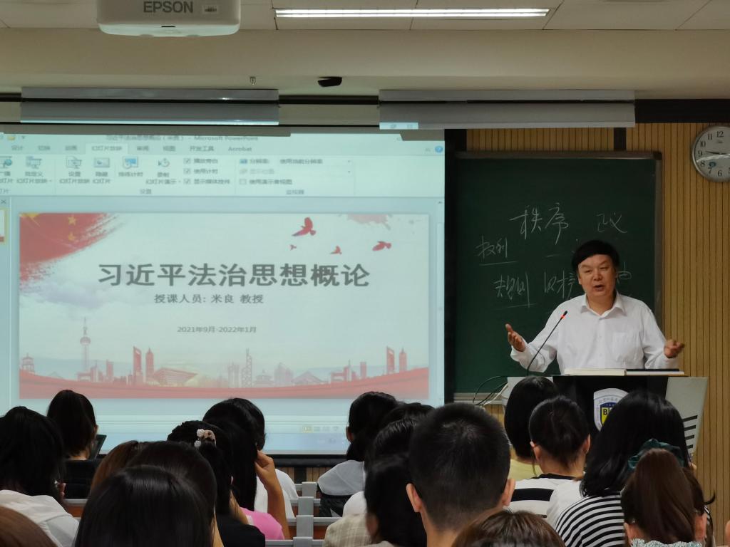 2021年9月14日上午,我校437437必赢国际网址首开《习近平法治思想概论》课程。这是我校首次为本科生开设这门课程并把其作为法律专业本科生的必修课,每周2个课时,学习一个学期,共32课时,2个学分,由437437必赢国际网址米良教授主讲。