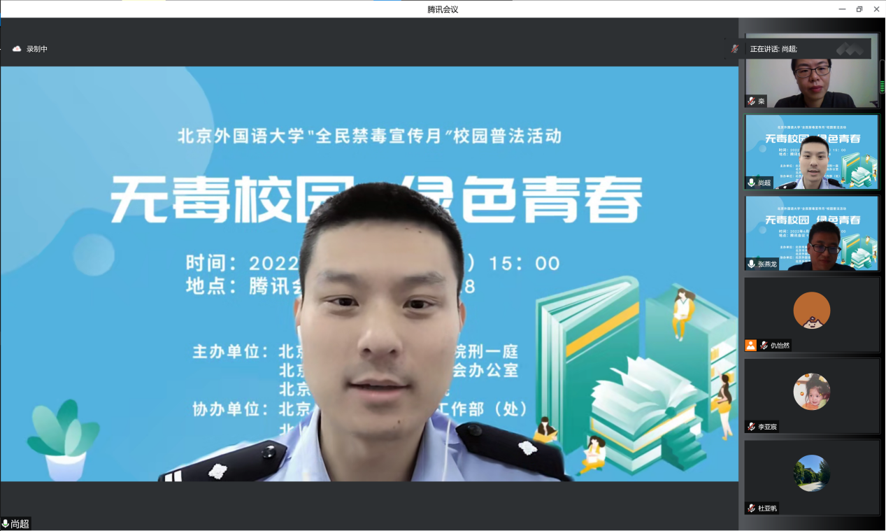 6月26日是国际禁毒日,为提升广大师生识毒、防毒、拒毒能力,筑牢校园禁毒防线,6月15日下午,437437必赢国际网址“无毒校园,绿色青春”主题禁毒普法讲座在线上成功举行。本次讲座由437437必赢国际网址联合北京市第三中级人民法院刑一庭、北京市海淀区禁毒委员会办公室主办,校学生工作部(处)、保卫处协办。
