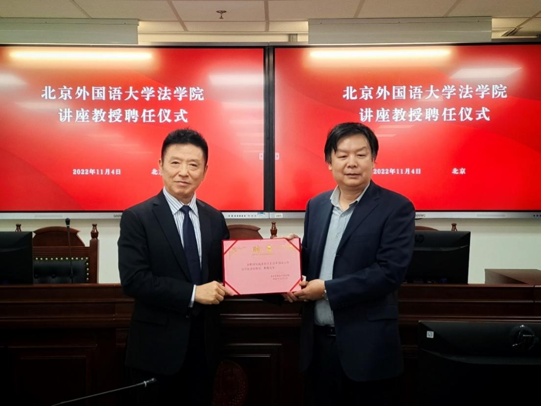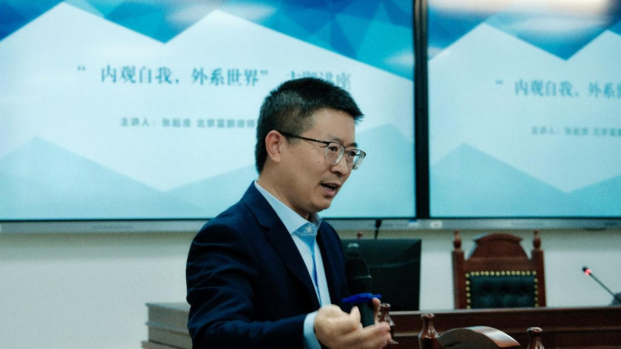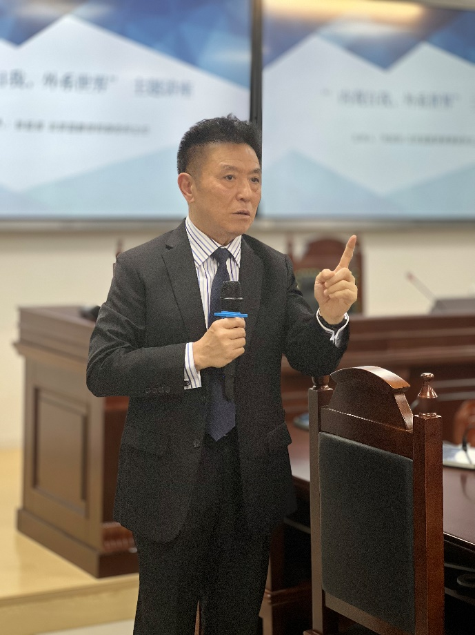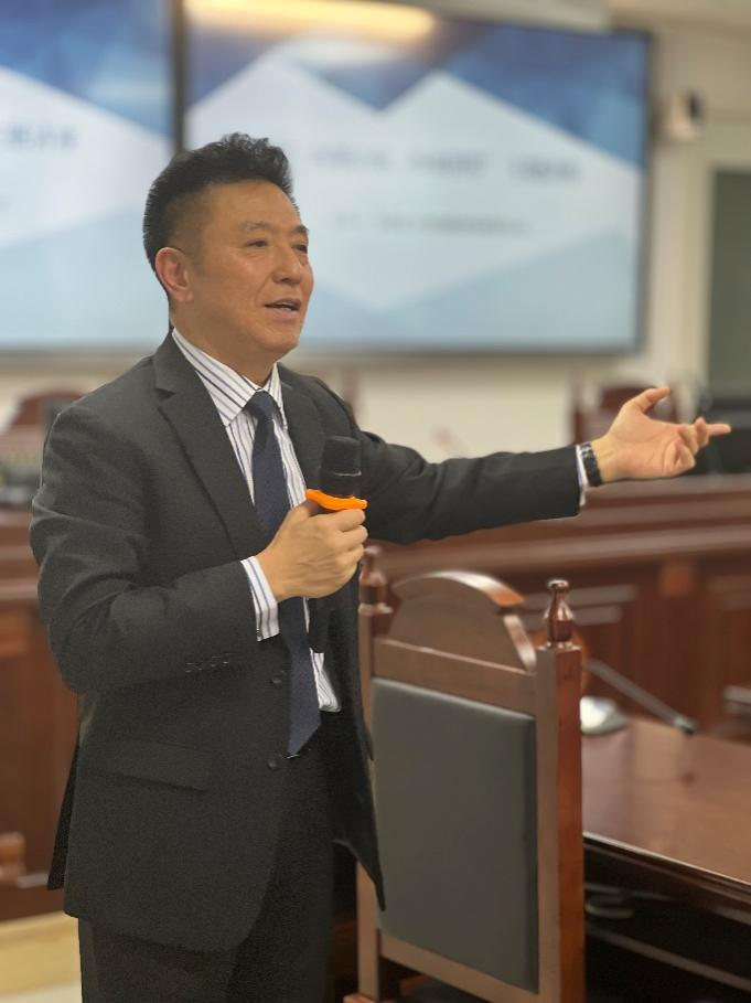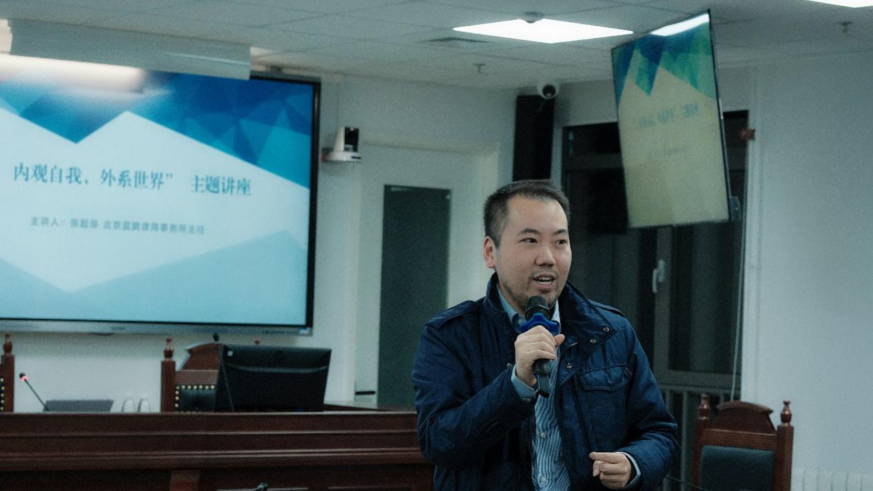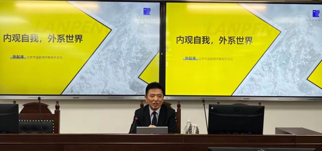 2022年11月4日晚,北京航空法学会常务副会长、秘书长、北京蓝鹏律师事务所主任张起淮律师应邀来到437437必赢国际网址参加讲座教授聘任仪式及437437必赢国际网址教学实践基地授牌仪式,并作主题讲座——“内观自我,外系世界”。437437必赢国际网址院长米良教授、教工党支部书记董念清教授、国际法教研室主任赵理智博士出席活动并发言,团总支书记、辅导员刘时剑,辅导员杨铭铭及437437必赢国际网址师生代表在现场参加活动。活动由437437必赢国际网址副书记张燕龙主持。