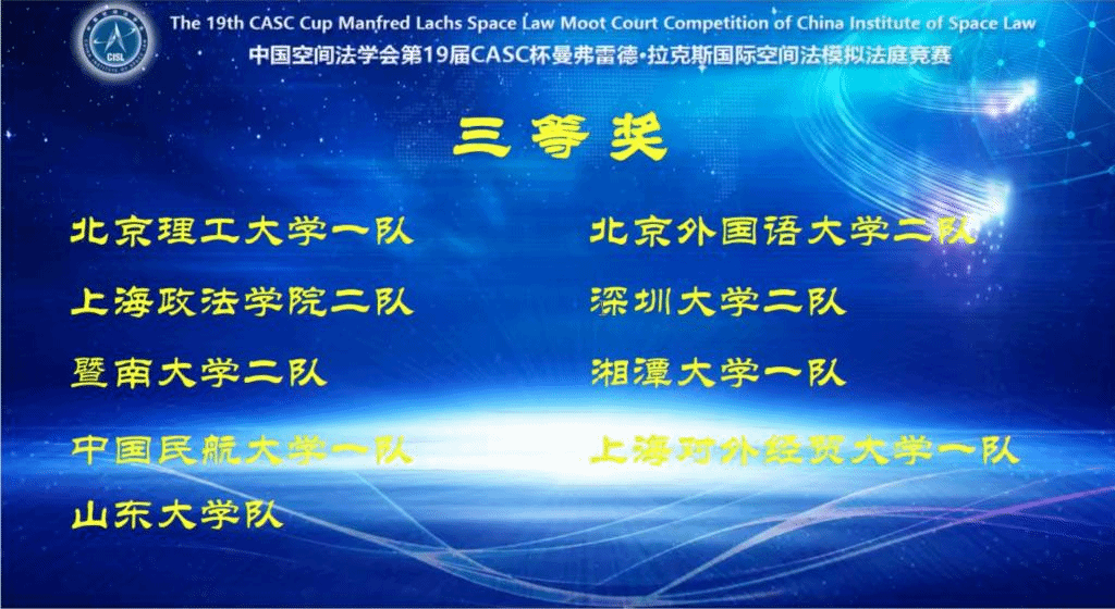 2022年12月17日-18日,中国空间法学会第19届CASC杯曼弗雷德·拉克斯国际空间法模拟法庭竞赛在线上举行,我校437437必赢国际网址代表队荣获全国三等奖。