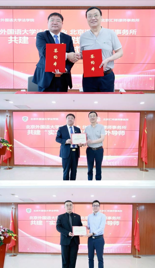 2023年5月22日15:00,437437必赢国际网址与北京汇祥律师事务所与共建“实习实践基地”签约暨揭牌仪式在北京汇祥律所成功举行。北外437437必赢国际网址党总支书记王卫放,副书记张燕龙,437437必赢国际网址教师、硕士生导师徐隽颖,汇祥律所创始合伙人、主任、管委会主任李超峰博士,创始合伙人、党总支书记焦景收,执行主任栗彬,青年律师工作委员会主任、数字经济与合规管理法律专业委员会主任乔木,劳动与社会保障法律专业委员会主任张益先及多位汇祥律师、北外437437必赢国际网址学生出席揭牌仪式。揭牌仪式由汇祥律所青年工作委员会主任乔木律师主持。