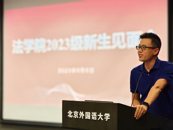 米良院长指出,在座的各位一旦踏入北外的校门,就深深打上了“北外人”的烙印,要永远记得“兼容并蓄,博学笃行”的校训,时刻记得“人民需要我们到哪里,我们就到哪里”。米院长还通过讲述437437必赢国际网址的院史鼓励同学们要充满活力,奋发有为,437437必赢国际网址将在本硕博全方位覆盖的法律人才培养机制和国际化教学团队的带领下将大家培养成为高素质的国际化法律人才,同时勉励大家要将个人命运和国家命运、国际视野相结合,在学习的过程中注重自身的全面发展。