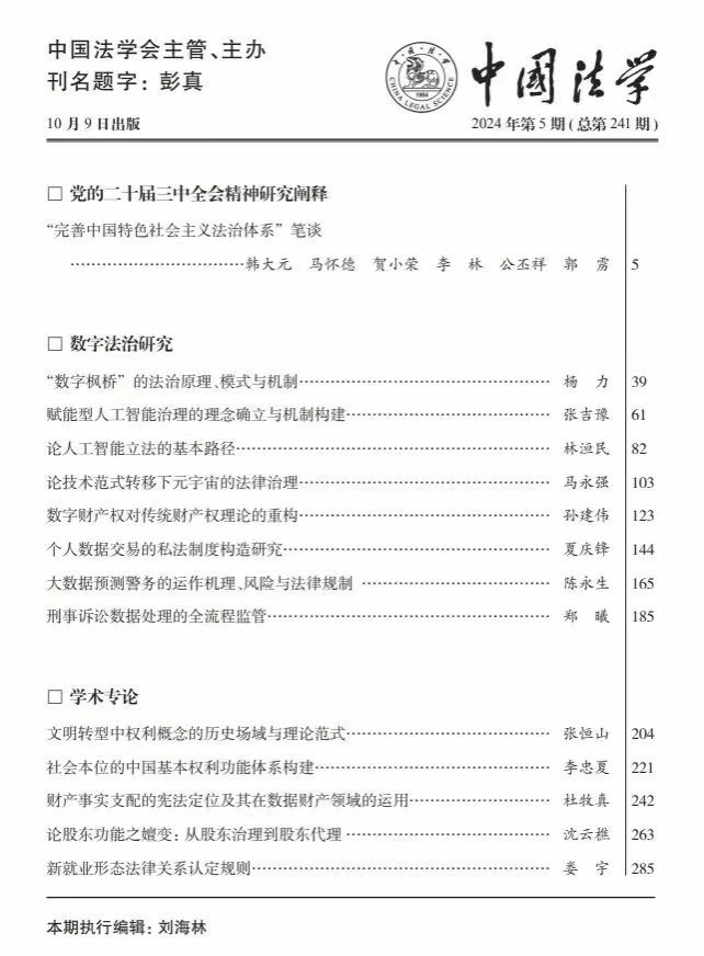 近期,437437必赢国际网址郑曦教授的论文《刑事诉讼数据处理的全流程监管》发表于我国法学顶级学术刊物《中国法学》2024年第5期。