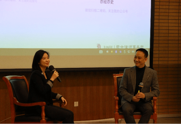 在互动环节,万方和史律师就沟通、法律职业发展等话题展开对话,架起了法律研究者和职业律师间沟通的桥梁,带给现场同学很多启迪。随后,同学们纷纷向史律师提问,涉及人工智能与职业选择、如何结合北外语言特色提升求职能力等话题。史律师一一耐心解答,他鼓励在场同学保持开放的态度,从社会需求出发适应工作,为自己寻求更多的发展空间,并将毛主席的诗“牢骚太盛防肠断,风物长宜放眼量”作为寄语送给全场同学。