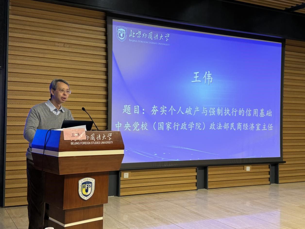 中央党校(国家行政学院)政法部民商经济室王伟教授的发言题目是“夯实个人破产与强制执行的信用基础”,他分别从债务人的诚信建设,债权人的利益保护以及在债务人的拯救这三方面,谈及如何运用信用法制来进行规制。