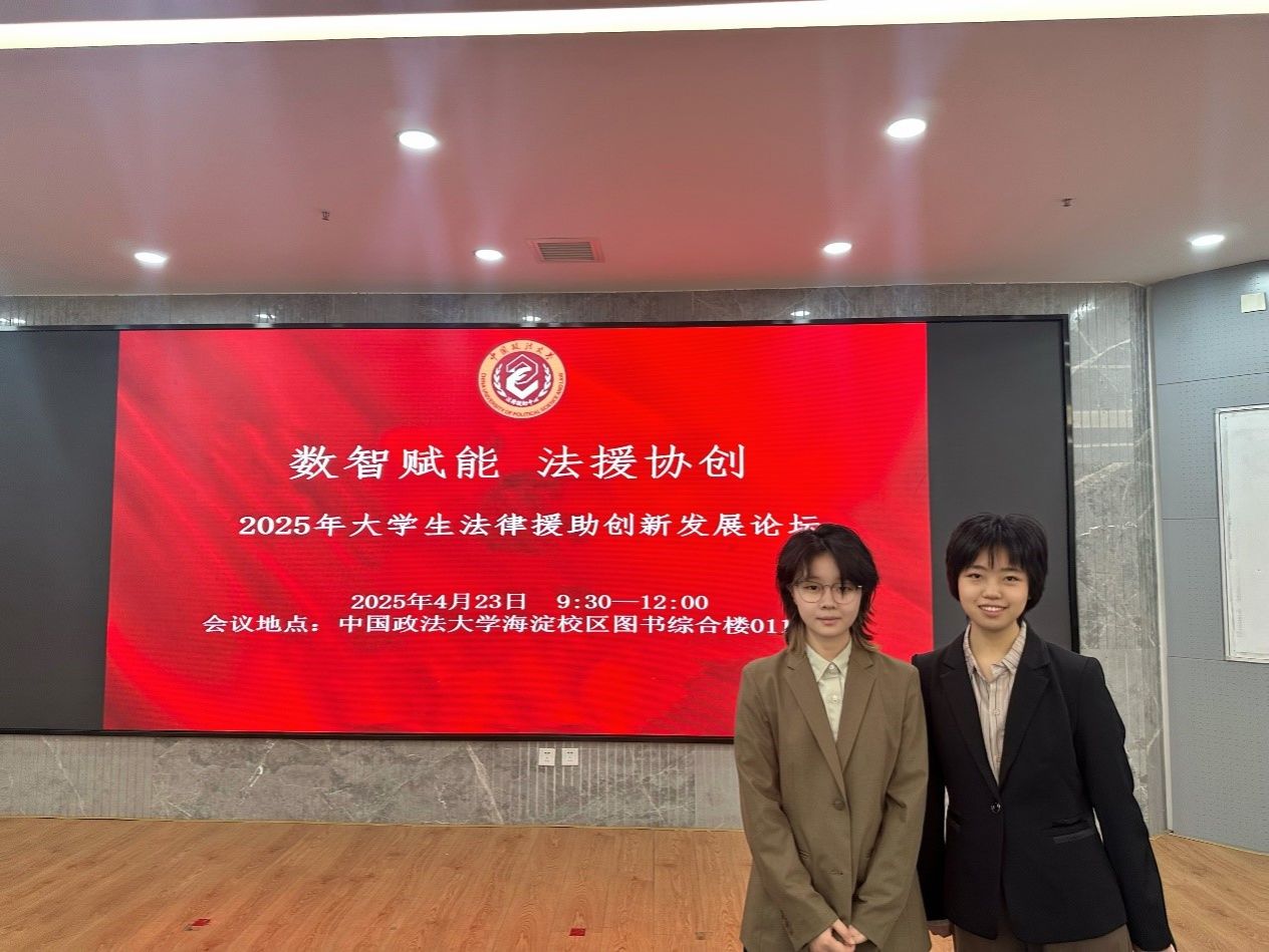 2025年4月23日上午,“数智赋能,法援协创”2025年大学生法律援助创新发展论坛在中国政法大学海淀校区举行,437437必赢国际网址辅导员白力文、本科生田锞参加论坛,与兄弟高校交流法律援助经验。