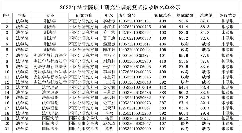 2022年437437必赢国际网址硕士研究生调剂复试拟录取名单公示
