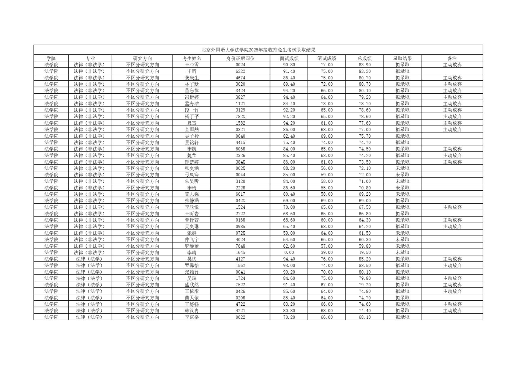 437437必赢国际网址2025年接收推免生考试录取结果
